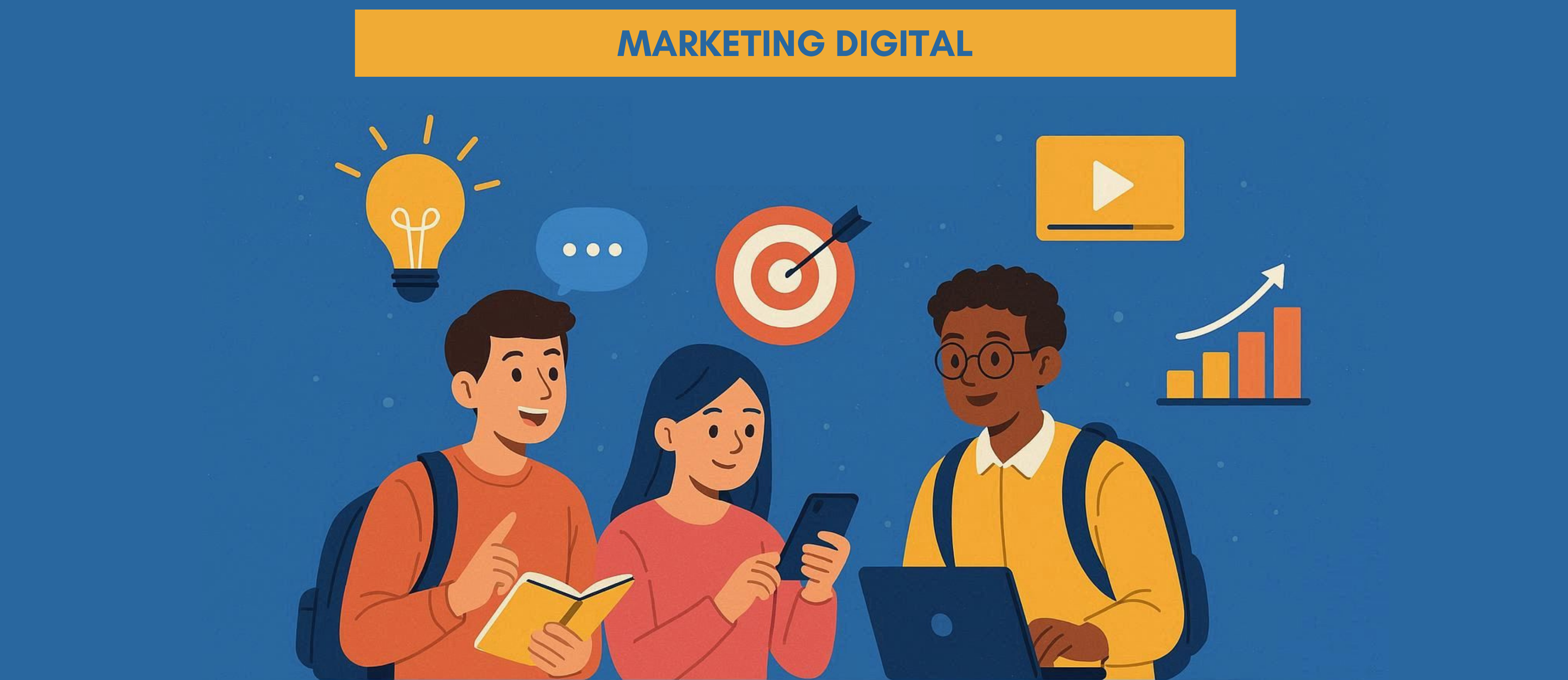 O conteúdo está dividido em módulos/blocos temáticos, que incluem desde os fundamentos do marketing digital até a criação de campanhas, análise de resultados e acessibilidade digital. Cada módulo foi planejado para que você evolua de forma gradual e segura, com exemplos reais e linguagem clara.