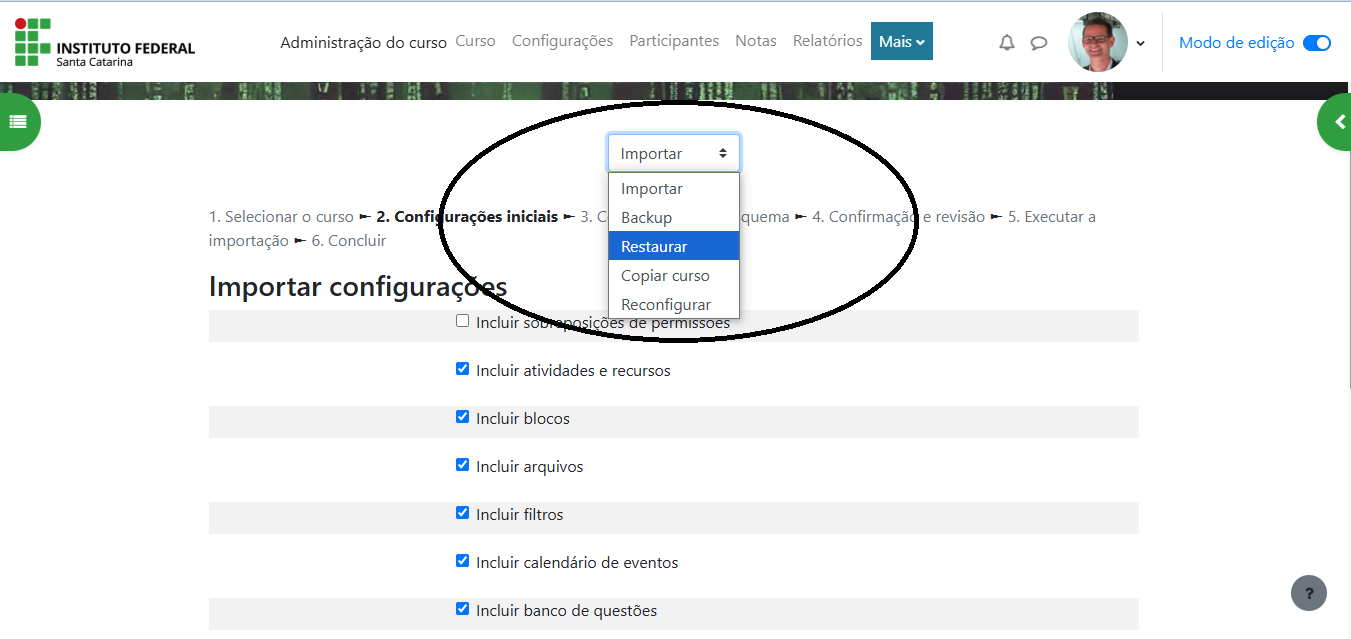 4- Restaure o curso no câmpus Gaspar.