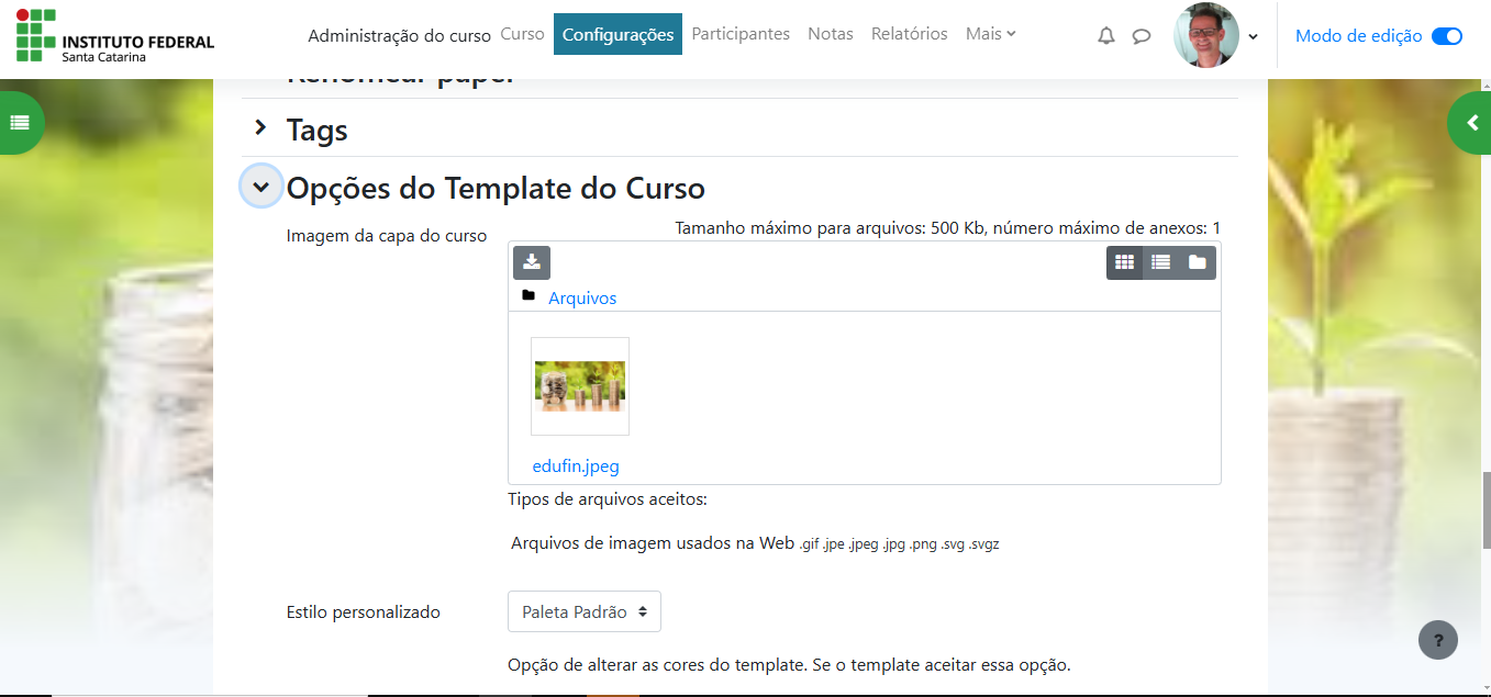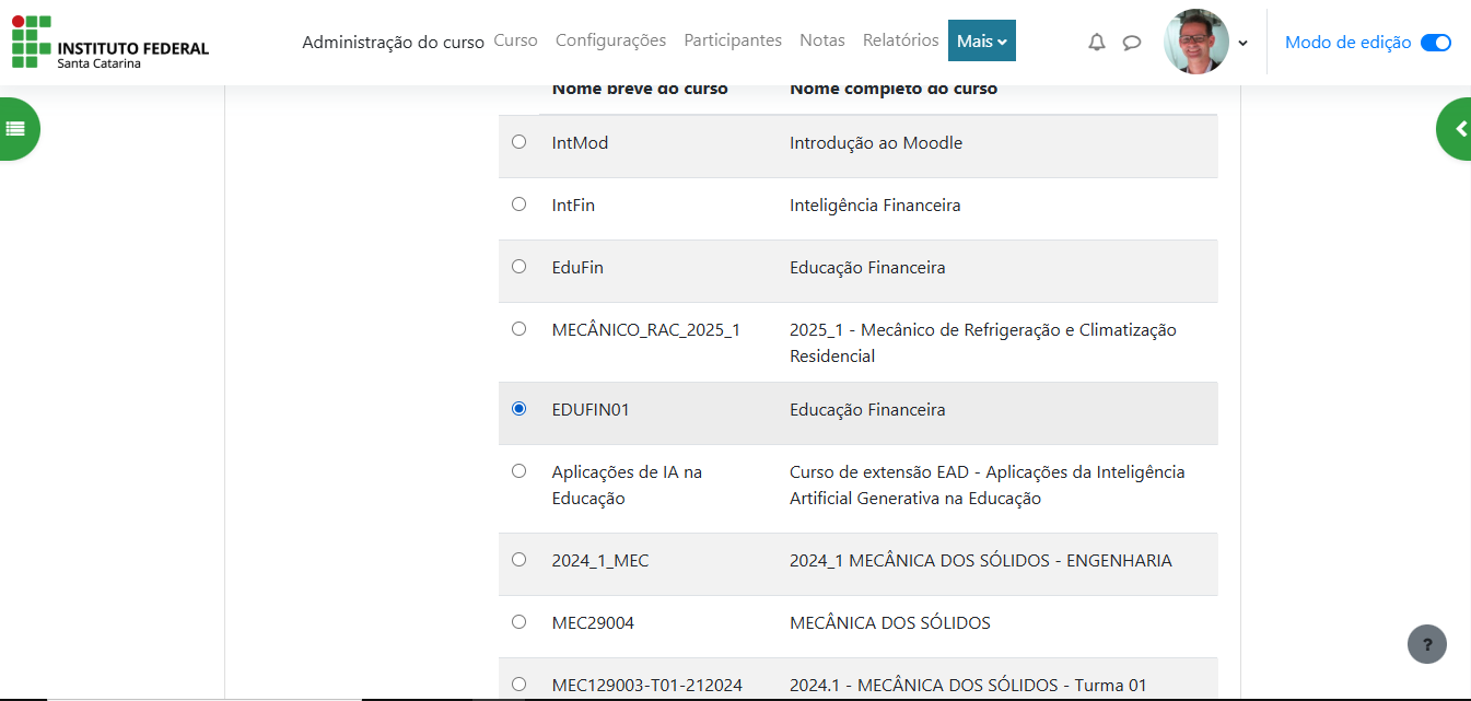 Vamos utilizar como modelo o curso de Educação Financeira do câmpus São José