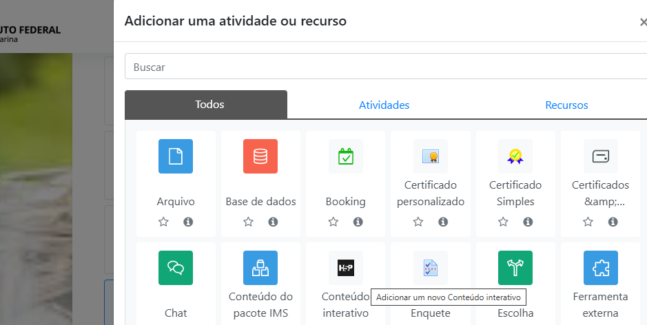 Selecione "Conteúdo interativo H5P" e clique em "Adicionar".
