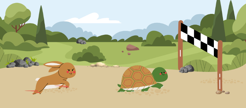 Lembra da história A Lebre e a Tartaruga, na qual a lebre desafia a tartaruga para uma corrida? É uma boa história para você apresentar às crianças os conceitos lento, rápido, depressa, devagar. Você encontra o texto da fábula A Lebre e a Tartaruga, de Esopo, e também o vídeo em Libras disponível on-line e de forma gratuita.