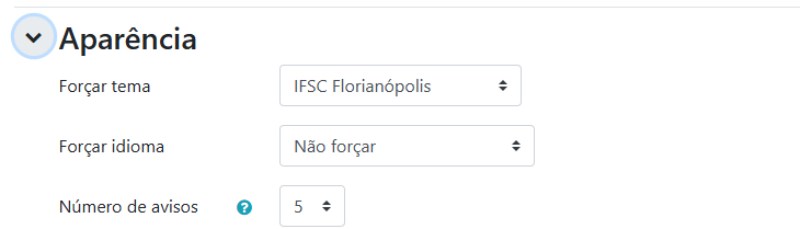 Em aparência utilize o Template "IFSC Florianópolis" . Configure o número de avisos.