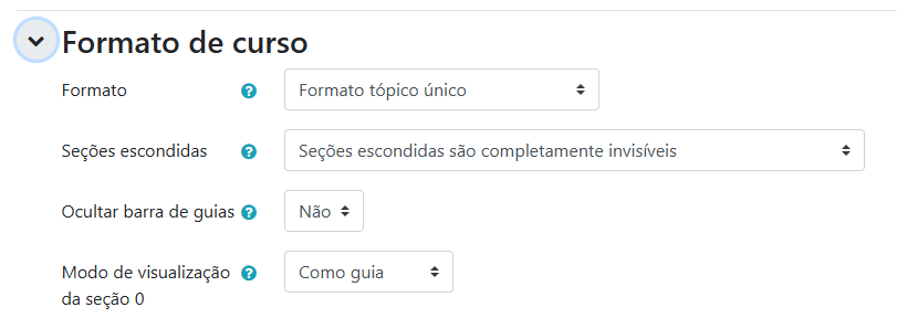 Em formato de curso selecione "FORMATO TÓPICO ÚNICO"